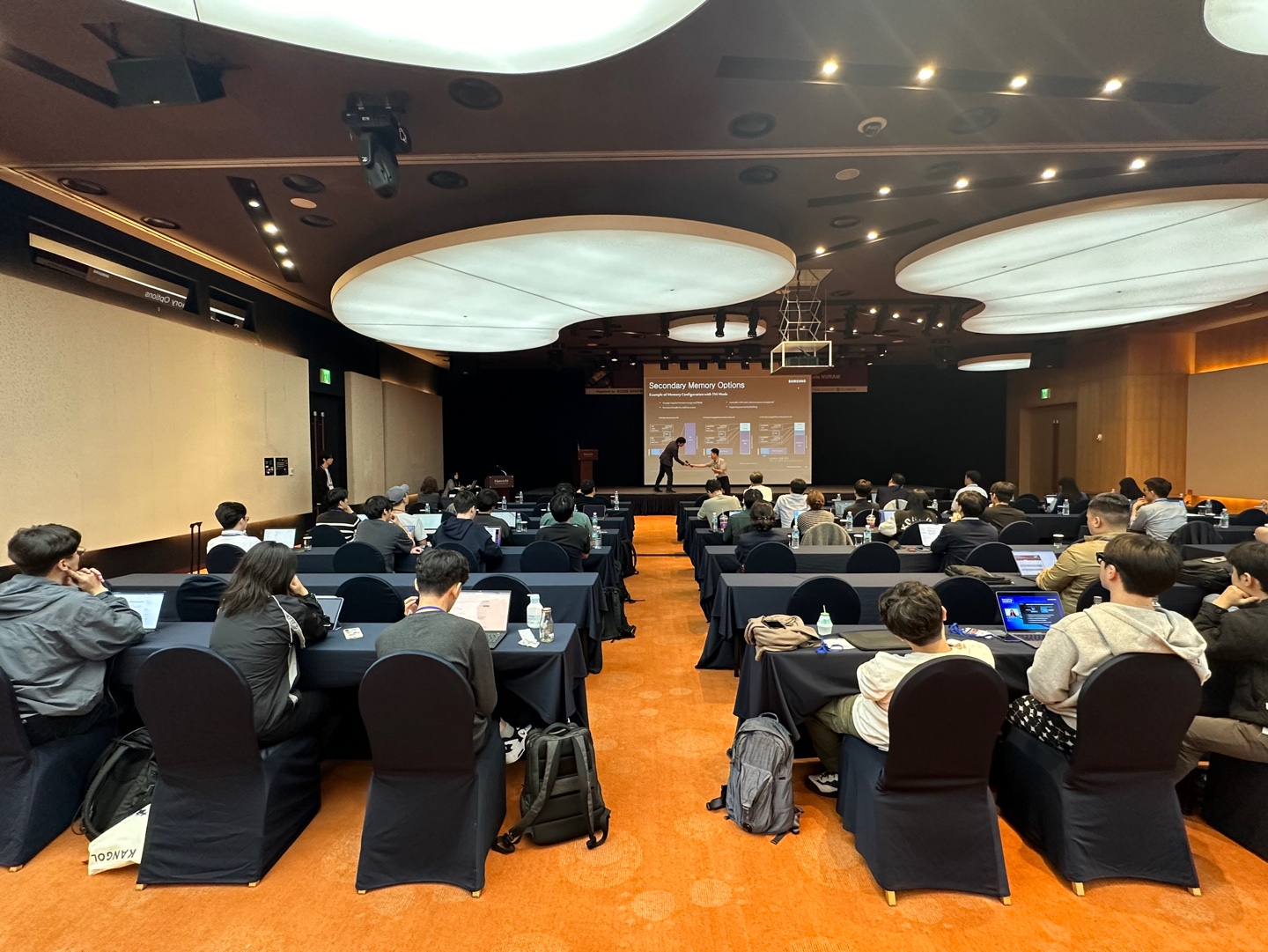작성자: 문규빈지금까지는 시스템 소프트웨어, 조금 더 세분화하여 스토리지 분야에서 보편적인 문제를 해결하는 방법을 중심으로 연구를 진행하여 최신에는 어떤 사항을 문제 사항으로 정의하는지, 이를 스토리지 관점에서 어떤 방식으로 풀어나갈 수 있는지 알지 못하였다. 이번 NVRAMOS를 통해 최신 연구 내용을 접함에 따라, 추천 모델의 파라미터적 특성을 활용한 바이트 단위 스토리지 접근, 키-벨류 데이터베이스의 log-structure 데이터를 효율적으로 저장하는 방법 등 최신 시스템에서 주요하게 사용되는 워크로드를 분석하여 스토리지 관점으로 최적화를 시도하는 연구를 알게 되었고, 나 역시도 어떤 워크로드를 어떤 방식으로 접근해야 할지 방향성을 잡을 수 있었다. 이 외에도 시스템 소프트웨어 분야가 아닌 컴퓨터구조 분야가 바라보는 SSD 최적화 포인트, 하드웨어 중심이냐 소프트웨어 중심이냐 따라서 기존 블록 인터페이스 방식부터 멀티-스트림, Flash-Alloc, FDP, ZNS부터 Open-Channel SSD까지 다양한 최신 SSD 구조에 대해 알아볼 수 있었고, 이를 연구하기 위한 환경인 NVMeVirt까지 자세히 알게 됨에 따라 기존 전통적인 SSD를 넘어 최신 SSD를 통한 연구의 가능성을 알게 되었다.